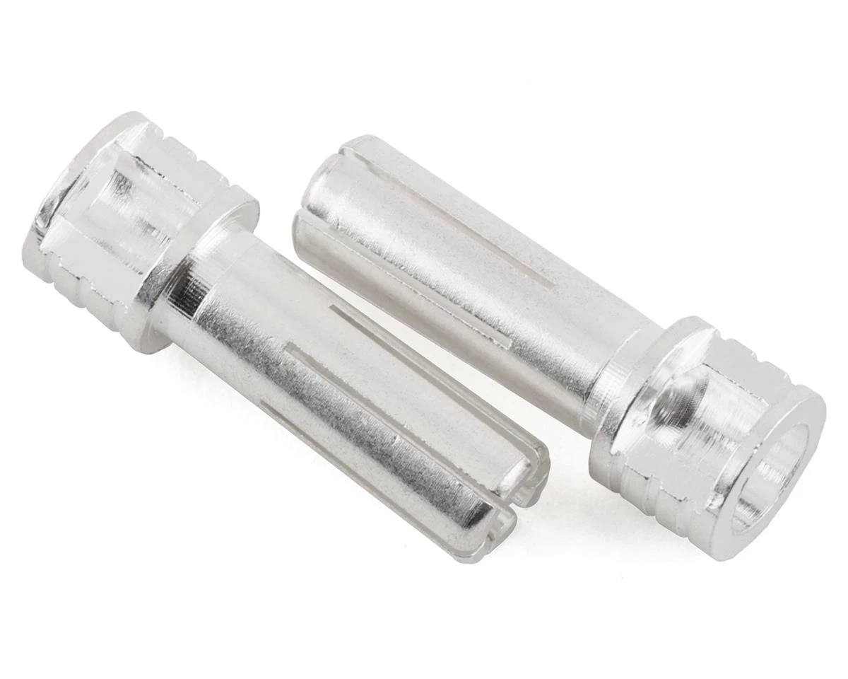 The Team Associated 5mm Grip Bullet Connectors are a great option for your 5mm bullet connector needs. These feature a raised, grooved top allowing it to easily be gripped aiding in removal. Using a silver coating these also provide an exceptionally low resistance connection when attached to a battery. Package includes two 5x14mm silver grip bullet connectors.Â