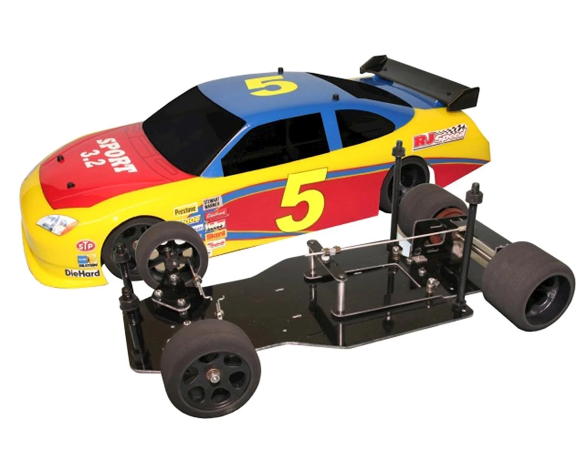 The RJ Speed 1/10 Sport 3.2 Pan Car Kit is a great platform for spec racing or street bashing. The kit is compatible with most 200mm bodies and standard size radio gear, and the wheelbase is adjustable from 10″ to 10.5″. The kit includes a ball differential, tune-able rear suspension, foam tires and a clear 200 mm wide stock car body with wing and pre-cut window masks. Requires a 540 or 550 size motor, 6 cell battery pack, 2 channel radio control with ESC and paint for the lexan body.