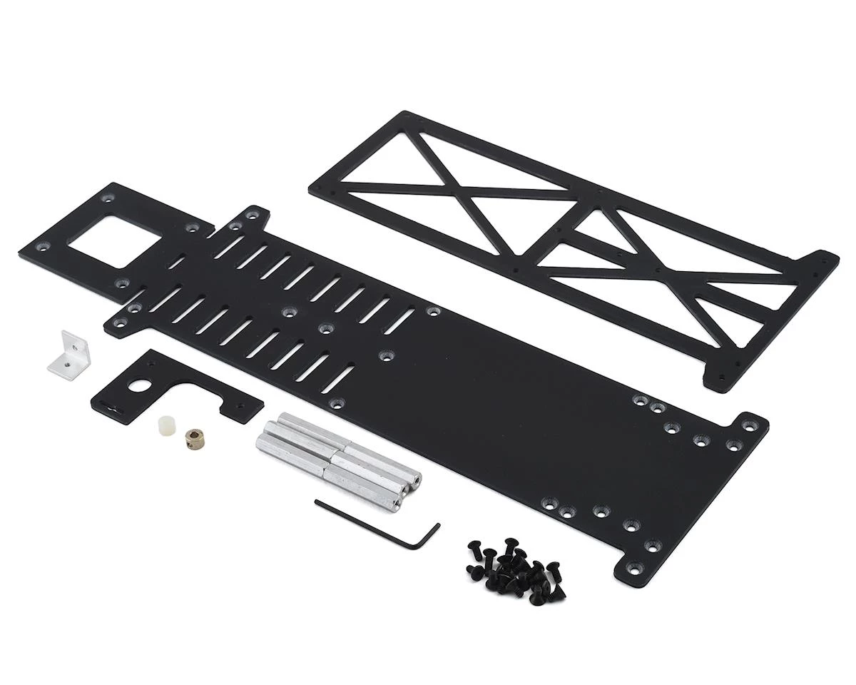 The RJ Speed Dual Plane Basic Drag Chassis Conversion is an affordable option to upgrade your RJ Speed Electric Pro Stock (RJS2001) or Electric Pro Mod (RJS2004) Cars with the Dual Plane chassis configuration. Add this chassis to your existing race car, and you have a car capable of handling more motor torque and multi cell LiPo packs. The increased rigidity and strength will help get the power to the ground without greatly increasing the overall weight. It also has a narrower front axle plate and a more rigid axle carrier on the opposite side from the motor for less flex at the rear of the chassis.